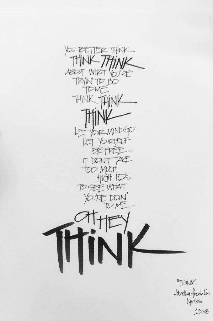 Aretha Franklin telling us to think, what could be more iconic? Who has not wanted to shout these lyrics in a meeting, at a family gathering, or even on some slow moving committee session? Everyone thinks they do it, yet in reality most people do as little thinking as possible. They would rather read, hear or watch what other people are doing instead of thinking and doing for themselves.