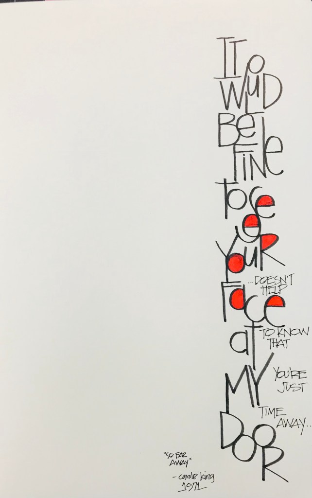 We have all experienced this over these last many months. Wanting to be with people we know, work with and care about yet being limited by time, distance and safety precautions. Carole King was talking about people at a distance, we are experiencing it due to a global pandemic yet the same heartache applies. I spoke to a woman today who was in her office and no one else was in sight. She had hoped the other people might be there as she misses those interactions, yet everyone else was working remote. There was a hint of longing as she told me this. I understood as I’m sure we all do.