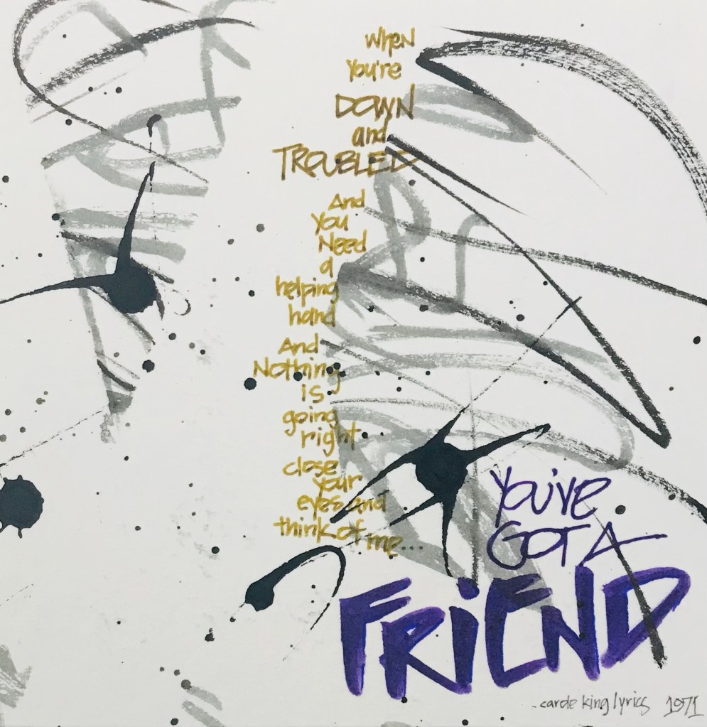 Carole King had a very dear friend who was having a rough time of it. She wanted to remind him the he was not alone, so she wrote him this song. That was fifty years ago and you might know his name, James Taylor. We went on to record the song and it was one of his most iconic hits. How wonderful to have a friend who wrote you something for your personal needs, which then became one of your greatest legacies. THAT is true friendship.