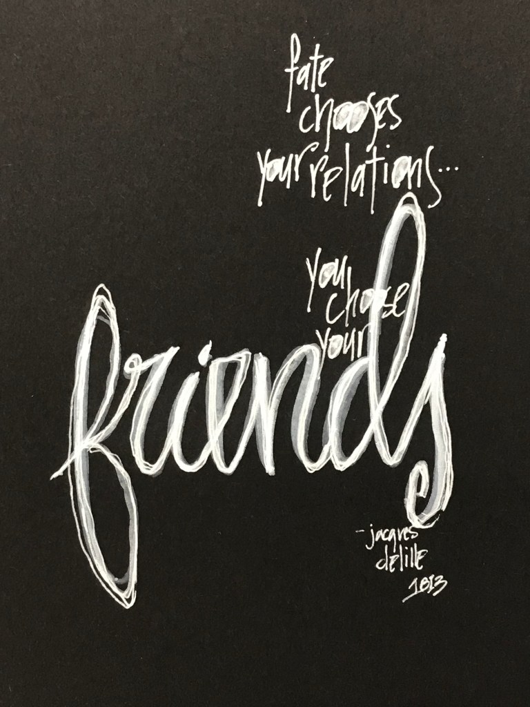 Life blesses us with family and gifts us with the family we choose which is our friends. If you have one friend, one true, trusted, and loyal friend you are blessed beyond measure. In a world that forces us to live busy, frantic lives it is the people we choose to be around that lift us to our best self, and those people are family and our chosen family our friends.