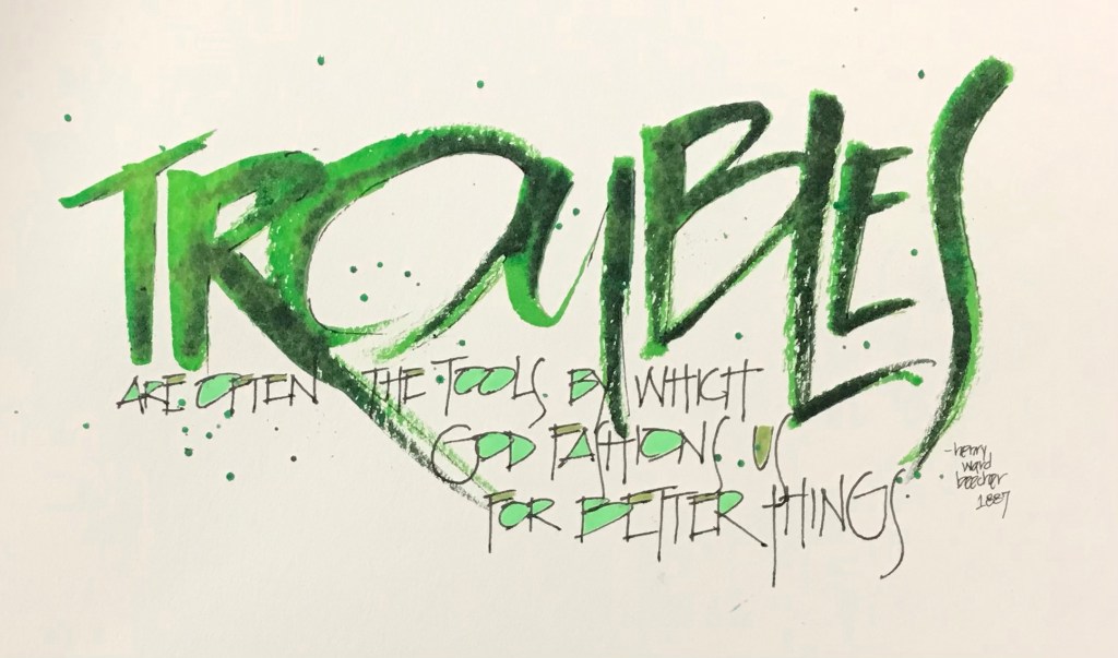 This quote reminds me that troubles are what make us after they break us. They overwhelm and may seem to crush us, when their real purpose it to build and develop us. That seems rather contrary? Yep, it is. If you ask anyone why they are the way they are, there is probably a story behind their character that describes the circumstances of how and why and where they became…their origin story. It is our troubles, strife and life experiences that make us because in the end none of that broke us, it built us!