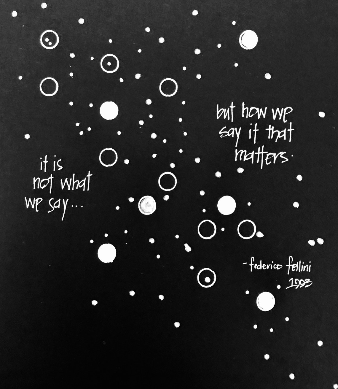 Words have power. They have the power to build or decay, encourage or destroy. It may not be as much about what we say but how we say it. I love that this quote is from Federico Fellini an Italian Film Director who is famous for how he conveys his idea in cinema. Choosing to use our words to convey and idea, a concept, a point, or a constructive suggestion is a great skill and not one that comes easily.