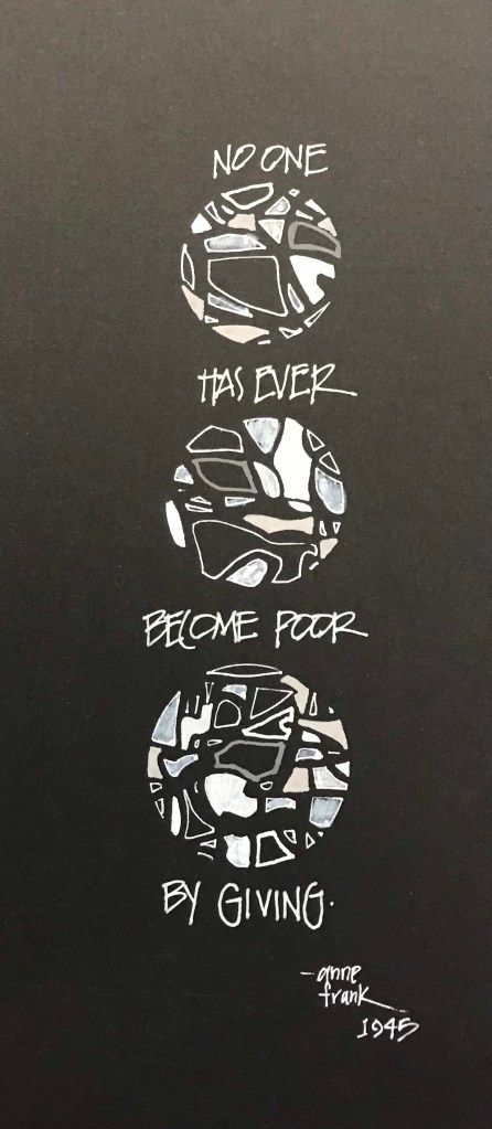 There is an unfortunate belief that if we give something away it means we have less. When I read these words from Anne Frank I was reminded about how the ‘giving results in less mindset’ is so untrue. I lived out an example this weekend. We had family visiting and they like plants. They do not have many plants and right now don’t have the money to go out and buy a bunch of plants. I have plants that are root bound, so I suggested we divide and repot a few of my plants so they could take some home. It was a fun project, they learned about how to repot and divide plants AND we all won. In the end I will actually end up with more plants and mine grow and refill their pots over the next few years.