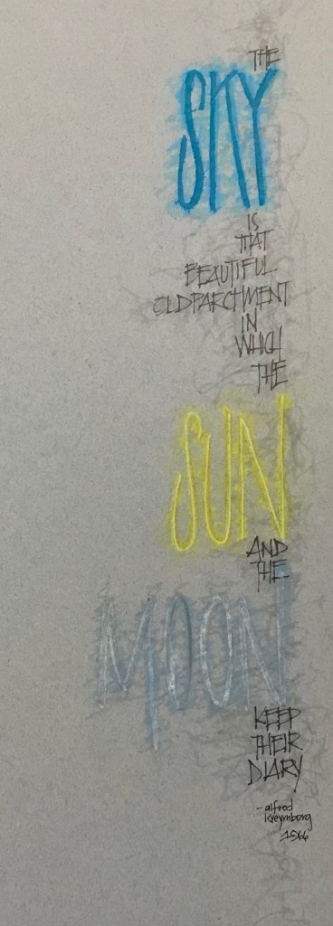 Today is a cloudy, windy day and the clouds are rolling in. There is rain predicted and after reading this quote it seems that the sun is telling us to go take a nap! I wonder what else the sun and moon would tell us if we were able to read their diaries?