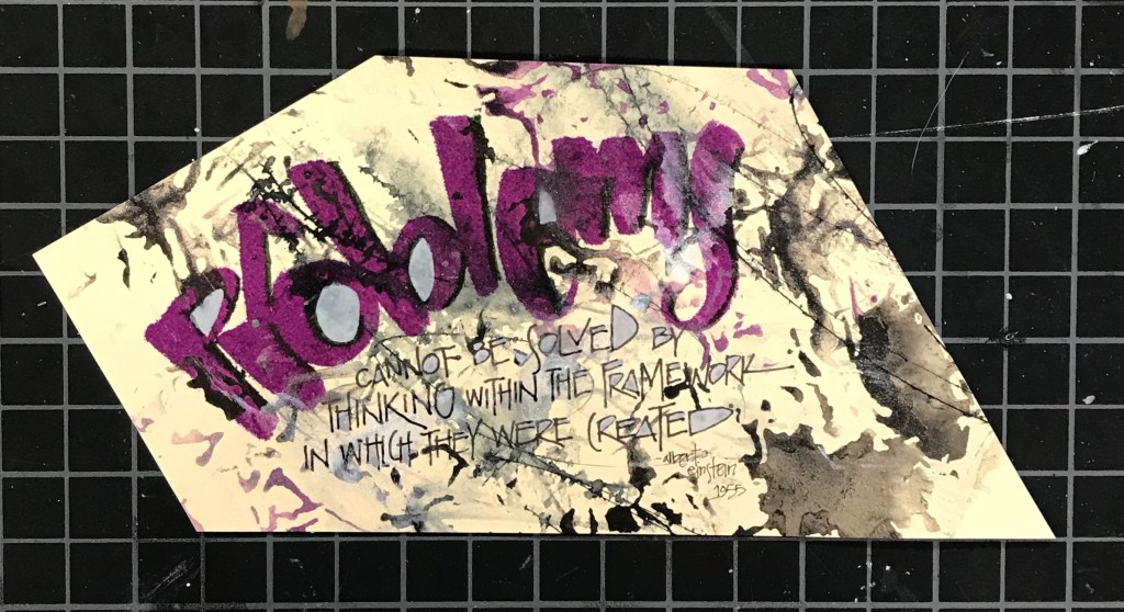 These words from Einstein made me think. In the problems I have how often do I simply employ the usual methods I have relied upon for years, and when do I gather up the courage to actually force change by altering how I approach them? It is more comfortable to face trouble and react the same way as before. We know that path, we know it usually works, and we know how to do it. And let’s face it, it usually blows over or allows us to move forward while keeping pace with our everyday life.