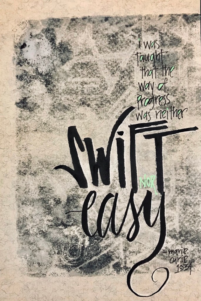 I realize that sometimes progress is easier to accomplish for other people than it is for ourselves. We put others before ourselves and before we know it we are last on the list with no energy to get anything moving forward. This is when these words from Marie Curie hit home – neither swift nor easy. No kidding! Being able to handle the slow along with the work is progress in itself, not to mention actually seeing an end result. Self discipline, self confidence and putting what we want FIRST may feel selfish yet in reality that too is progress. We are worth the time and effort, as much as what we want is important if only to ourselves.