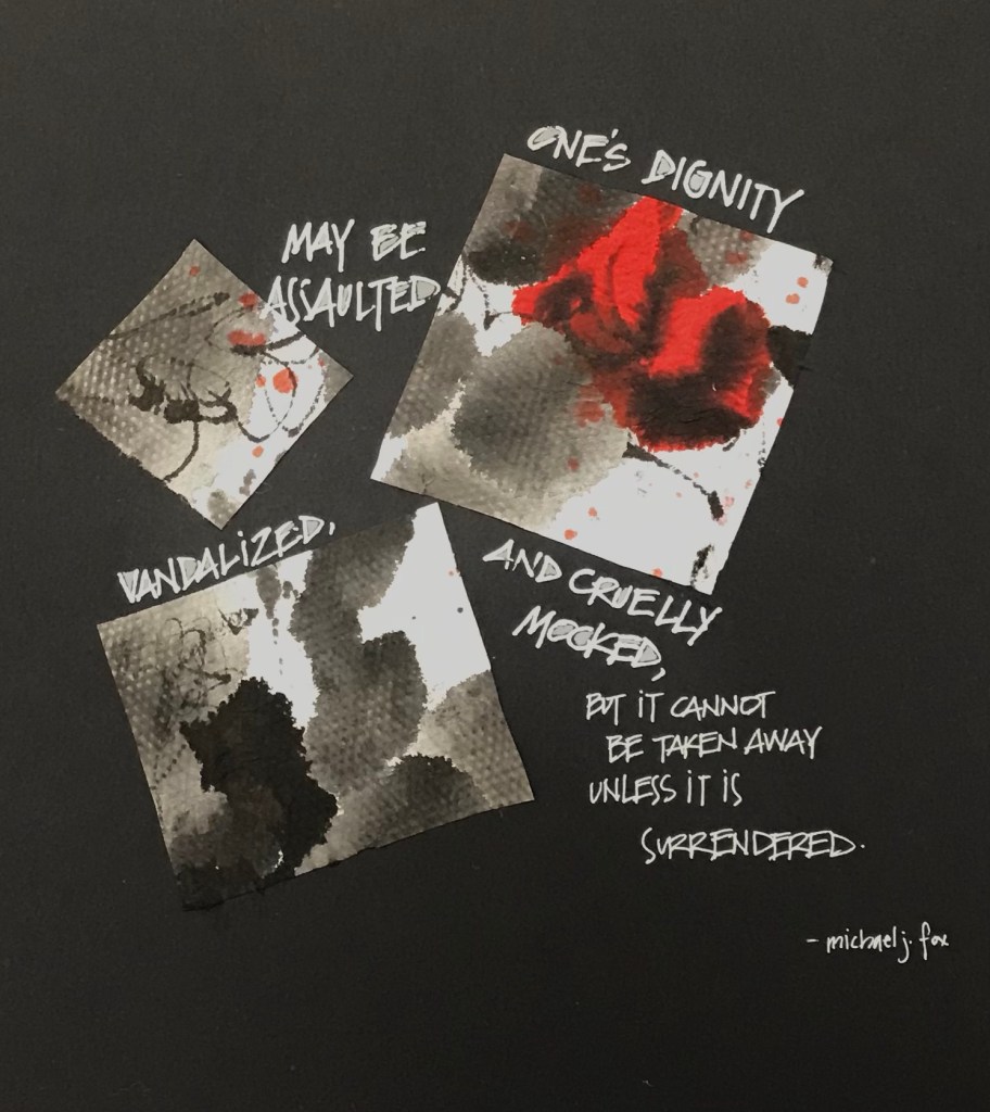 These words from a man who has been dealing with Parkinson’s disease for decades. His life was turned upside down, his career stunted and his children know him no other way, other than a dad that shakes a lot. Michael J. Fox has taken away all our of excuses when we are feeling bad or having a bad day. Our dignity may be dented, vandalized or mocked yet it can never be removed unless we surrender it.