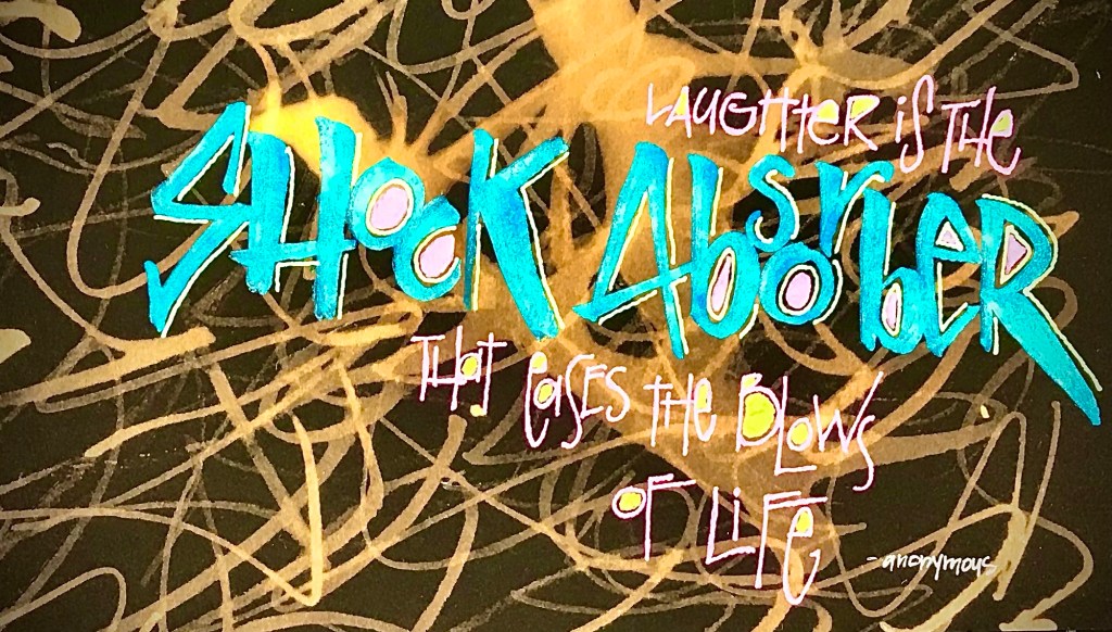 Thank goodness for those uproarious outbursts. They put the horrific into perspective. It may not have been funny at the time, yet now that we see things through calmer, clearer lenses we can “see” the fun in it all. It is as if the words in this quote – shock absorber – were said to describe exactly what we experience. Laughter helps us process and understand the hilarity in the sad, the bad and the truly heart breaking things that happen in everyone’s life. And thank goodness we have laughter to help us through it all.