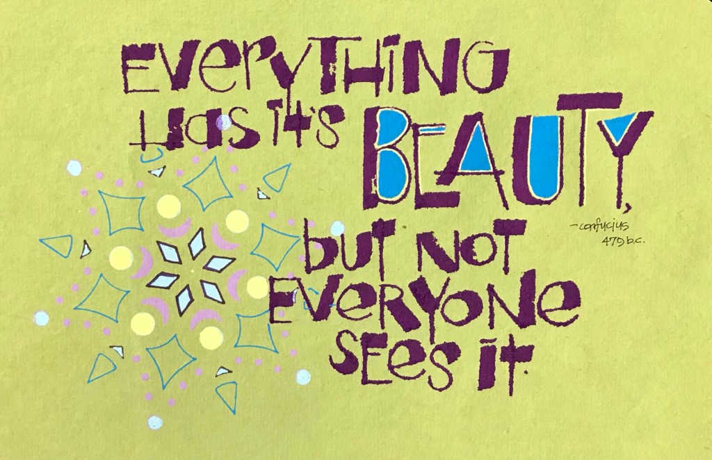We are a culture obsessed with beautiful things. Be it our homes, our automobiles, our appearance or the appearance of those with whom we associate, being beautiful is a full time, all encompassing drive. There are so many challenges with this beauty obsession that I do not dare get started, so I will travel this path instead. The words in this quote say it simply and clearly, everything has it’s beauty, but not everyone sees it.