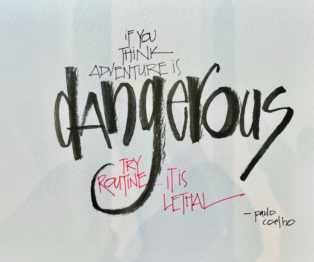 It is when we are so comfortable that we are unable to imagine life any other way, that is when we need to inject a little change, a little danger in our routine. For it is really our comfort that will kill us by numbing us into a false sense of safety and security. No one accomplishes anything without a little danger, without breaking their routine and giving adventure a shot. So let me encourage YOU to give adventure a shot!