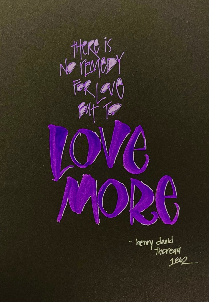 When things get dicey, instead of getting angry love more. When the people in your life do not always behave or think or interact with you the way you want, love more. When you need something and those darn people do not read your mind correctly, love more. And when we make mistakes or take people for granted, or hurt others unintentionally, we can hope that they will love us more than our actions deserve. Thoreau had a great idea here, the solution is not flight or fight, the solution is to love more.