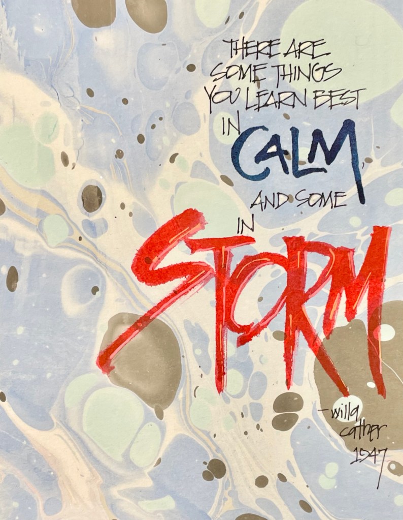 Willa Cather grew up on a homestead farm in the late 19th century. She eventually wrote several books about life on the prairie, O Pioneer! Being one of her best know. When I read her biography I realized that these words were straight out of her experiences as a child and adult living in the western parts, making a life, building a homestead. Be it calm or storm, lessons learned come to us in different ways.