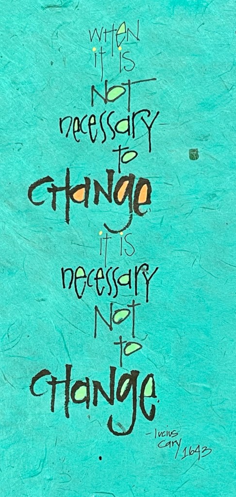 People breathed a sigh of relief, and once changes were announced they felt more a part of the change and had the energy to participate. Sometimes the best plan is not to change. Sometimes we need to understand the steady state in order to use people’s energy and enthusiasm more effectively. Living through all that made we wiser when it came to implementing change – at home and at work. Change is fantastic when it is necessary, changing for the fun of it is never really much fun.