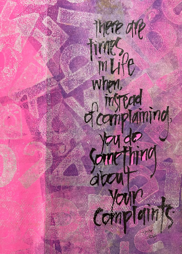 Managing our complaints, interesting that we face it on so many levels. Complaints about people, tasks, relationships, circumstances, and in this case characteristics of paper. Complaints bombard us and tend to bunch up, so some days it feels like everything going wrong or that needs to be managed piles together to complicate anything. And there are people who complain about every little thing, nothing is any good and talking about it (over and over and over and over again) does not make it any better. There is always something to complain about, does that make it okay to be a complainer?