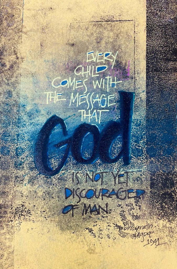 As she was visiting I read this quote and knew I had to letter it. Children bring such hope and joy, and the message that God is not yet discouraged of men. Isn’t that a fabulous thing to remember as we hear such awful things on the news, bicker amongst ourselves about rights and who is right, and struggle to make our way in the world? Children and babies especially remind us that long ago we were all that helpless, that trusting, that pure. We all learned what we know now – fear, prejudice, pain, anger, or want. And we learned laughter, fun, silliness, joy and unbridled enthusiasm. It is not until we are older that we lean towards one or the other of these things.