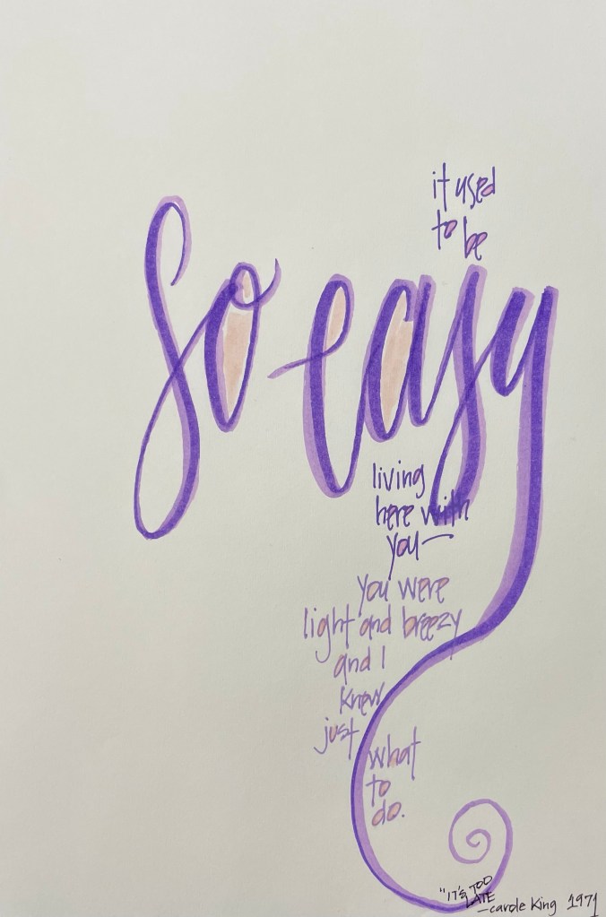 In 1971 Carole King broke away from writing songs for other people and produced her first solo album Tapestry. This song was the first single released from that album and it hit number one. Carole King’s days of being behind the scenes were over. I find it a great testament to her courage when these words are what broke her free from a life behind the scenes and listening to other people sing her songs.