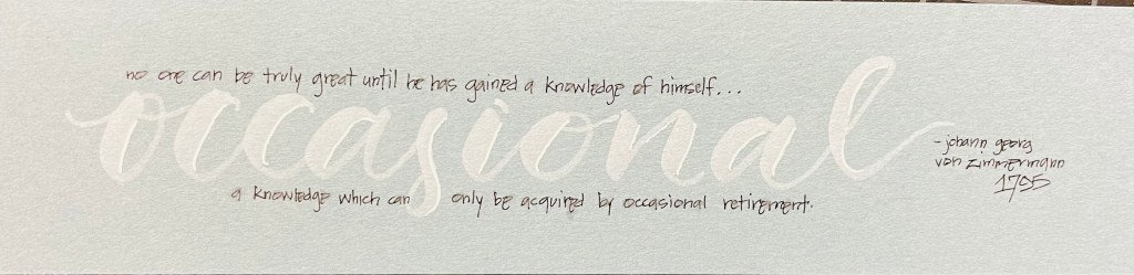 Occasional retirement…great phrase. The ability to leave our regularly scheduled elements of life alone for long enough for us to clear our heads. This may not be something you do often, and yet when you do practice being quiet you do notice a difference. You are sharper, calmer, more focused and better able to handle the monumental tasks each day requires. When we give ourselves the gift of silence we are giving ourselves the best of ourself. Thinking, pondering, praying, believing and hoping all take time. Self reflection, lessons learned and processed, breathing deeply and on purpose ALL require us to be silent. To be still. To turn off technology and be still.