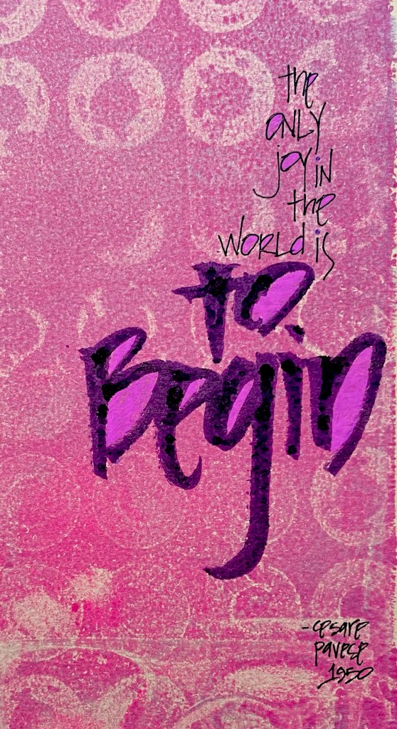 It may seem strange to talk about beginning as we approach the end of a calendar year; however, this is actually the prefect time to begin. To change our lives, change our outcomes, or even simply change our mind we have to begin. As these words remind us, we have to begin in order to experience joy. Why not begin as things are winding down?
