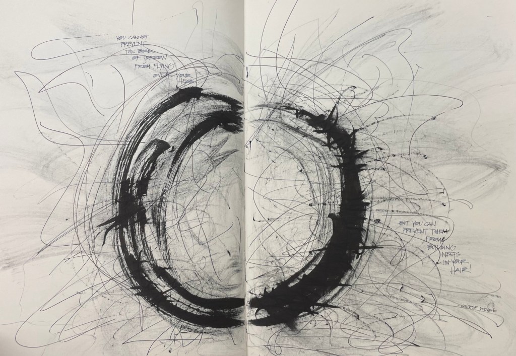 You cannot prevent the birds of sorrow from flying over your head, but you can prevent them from building nests in your hair.