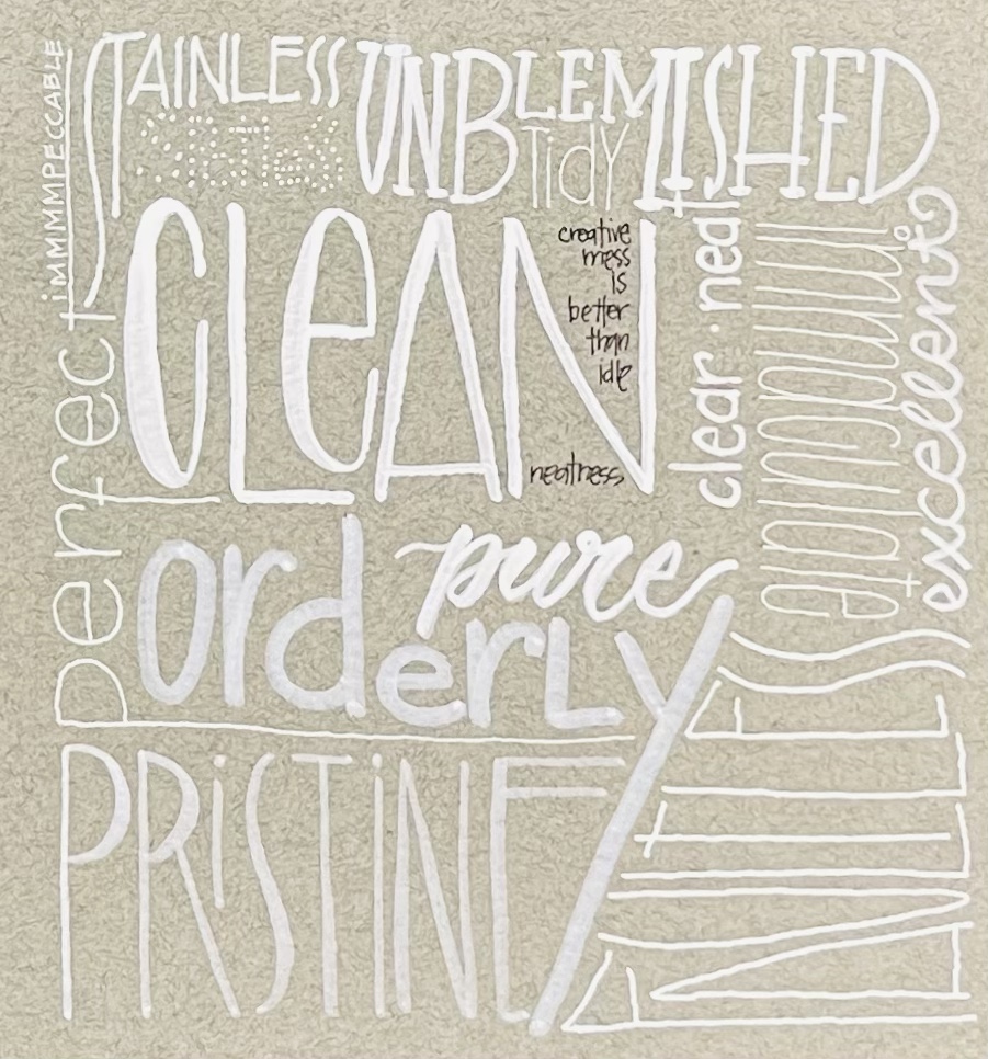 This is the first week and another year of fifty weeks of calligraphy. I am again participating in the Scribbled Lives group, and our prompt for week one was “clean slate”. No pictures, drawings, only lettering. I thought about actually finding a piece of slate to utilize, that didn’t work out. So I defaulted to paper and wrote down many synonyms for ‘clean’ as I could fit into one square.