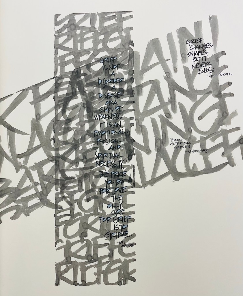 Here is another entry in the 5 Stages of Grief journal. The words read as follows: