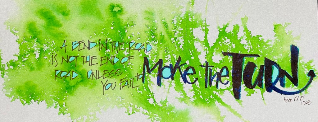 Two weeks in and depending upon how we have performed, we may or may not still be on track to do what we said we wanted to do. Too many bends in the road can make the road to our goal feel a bit more precarious than we bargained for…ugh! These words from Helen Keller remind us that a bend in the road is not the end of the road unless we fail to make the turn. Quite a statement from a woman who was blind, mute and deaf.