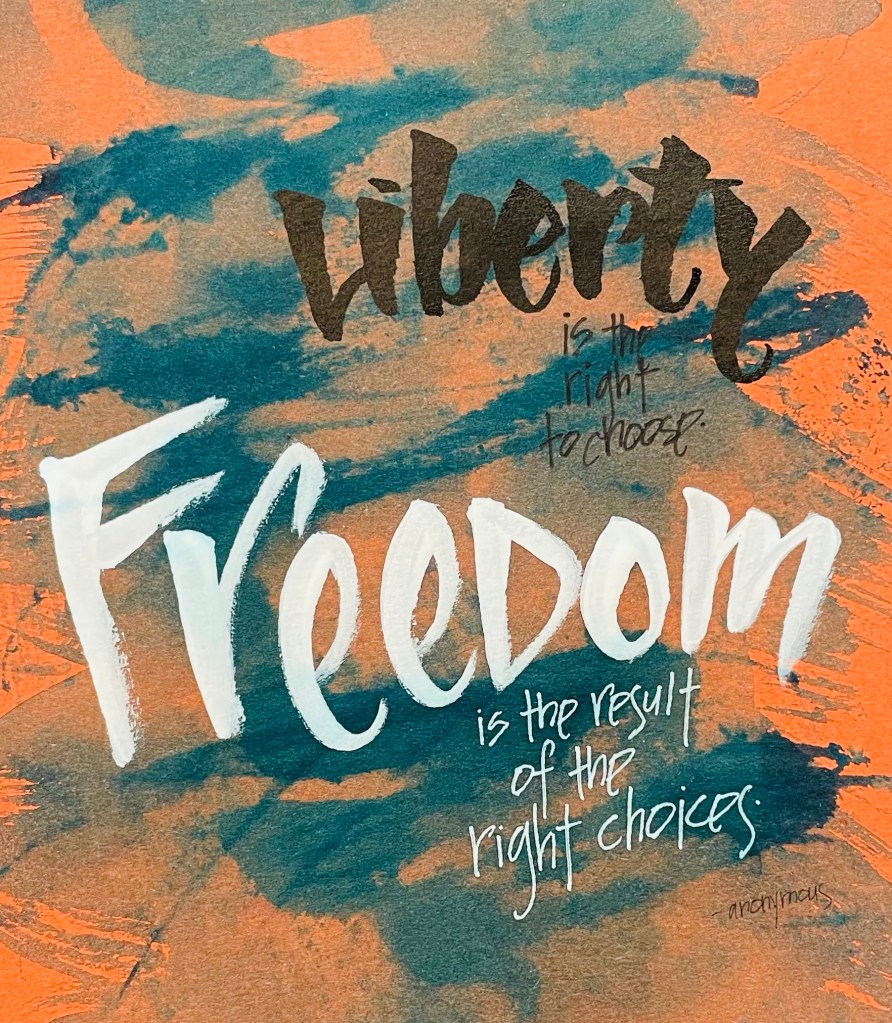 We are blessed as Americans to have the right to choose. We protect that right by voting, paying our taxes and voicing our opinions or concerns. This goes back to our constitution where the words Life, Liberty and the Pursuit of Happiness are part of our foundation as a nation. What I liked about this quote was that it reminded us that it is not liberty that grants us freedom, it is our choices.