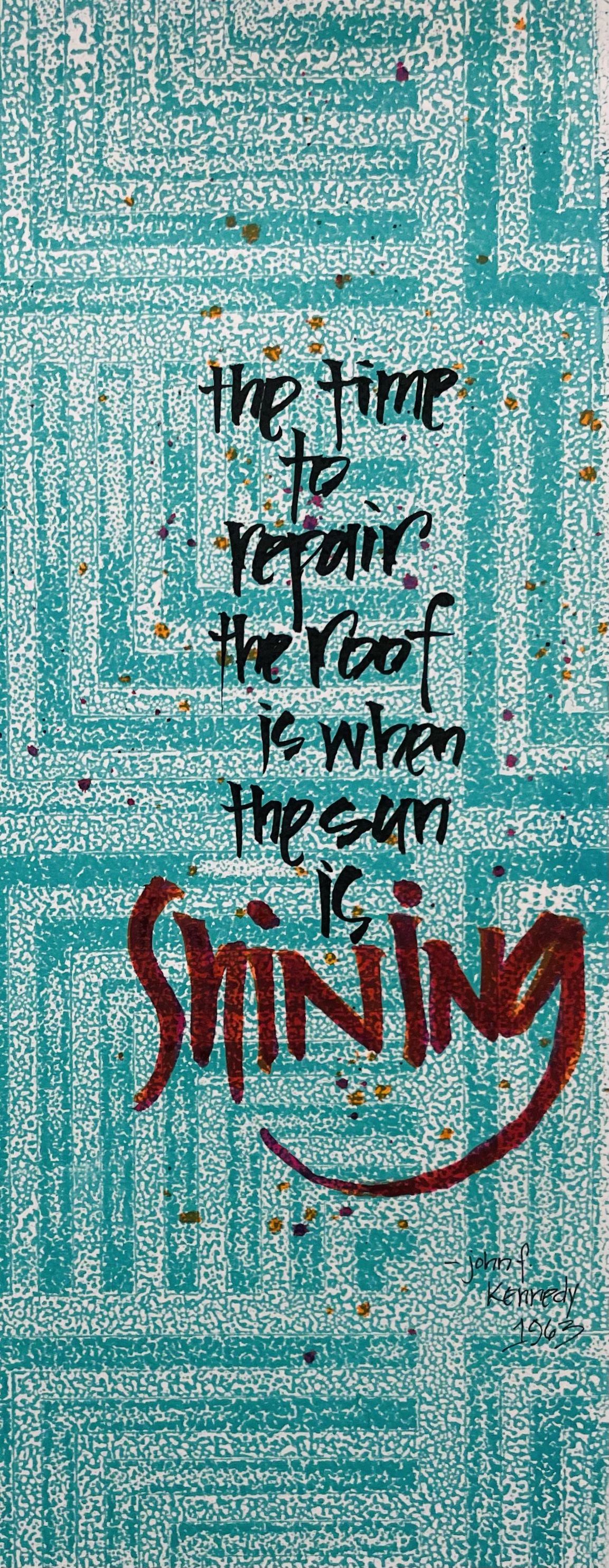 So what’s the thing you need to jump on to be prepared for rain? My guess is it isn’t particularly exciting, or something that will go viral on social media, yet if you do not do it while the sun is shining you will kick yourself once the rain arrives. The joys and chores of life are often one in the same. We do them to sustain the life we live, the one we have worked so hard to build. And what we want is more important than anything, even if that means spending a few sunny days repairing our roof. So get up, get to it, and enjoy the sunny day, the work and the outcome knowing that you will be well prepared when that rain arrives…and we all know that rain WILL arrive!