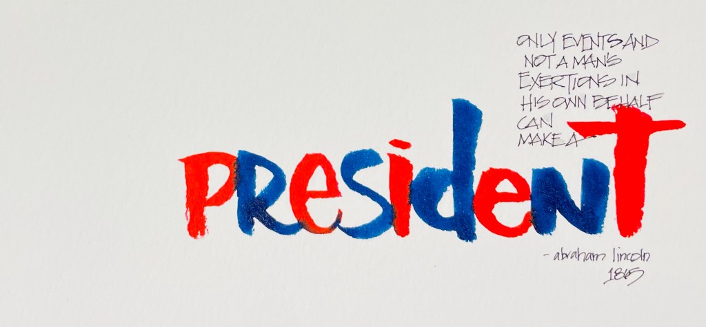 It is President’s Day in the United States, which means for a lot of people a day off. I found this quote and appreciated how Lincoln expressed his thoughts about making a President. We vote someone into office, after an election process…that does not make them President. It is the events they must endure, lead and decide how to proceed through that determine the kind of President they will become.