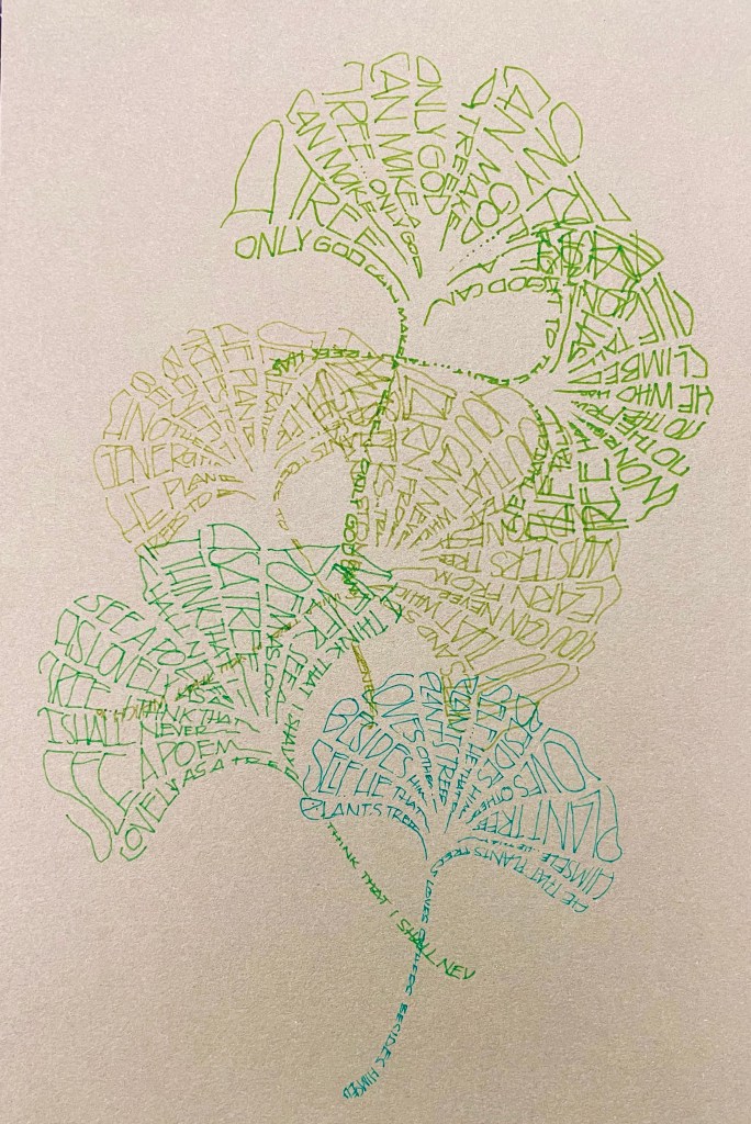 Let us take a lesson from these Ginkgo leaves filled with words about the love of trees. Less is often more than enough. Enough to fill our coffers, enough to bring us satisfaction and enough to help us get exactly what we want. Trees grow slowly and all too often so does our self awareness paired with the ability to say enough. Think about less today and find yourself more than satisfied with all the blessings of your life.