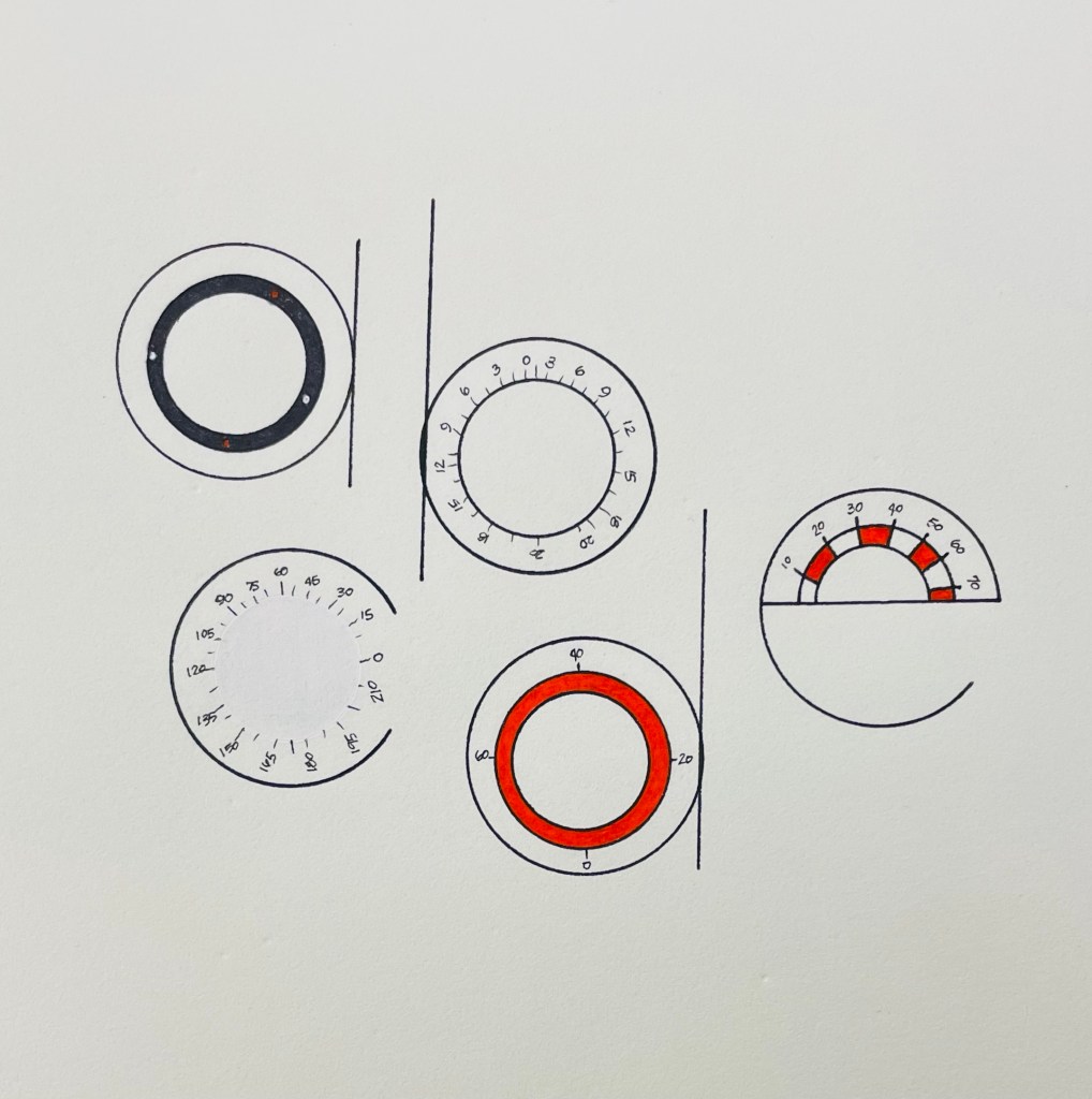 We were asked to create unique letter forms for week twenty-three in our fifty week calligraphy challenge. I must admit I had a very hard time finding something to inspire my creativity. All my ideas were the same old, same old, nothing unique popped into my head. So I waited instead of forcing an idea. I had to get my annual eye exam and snapped a photo of the tools they use, and bingo! I had an idea. The letters are inspired by the knobs on the equipment…kind of fun!