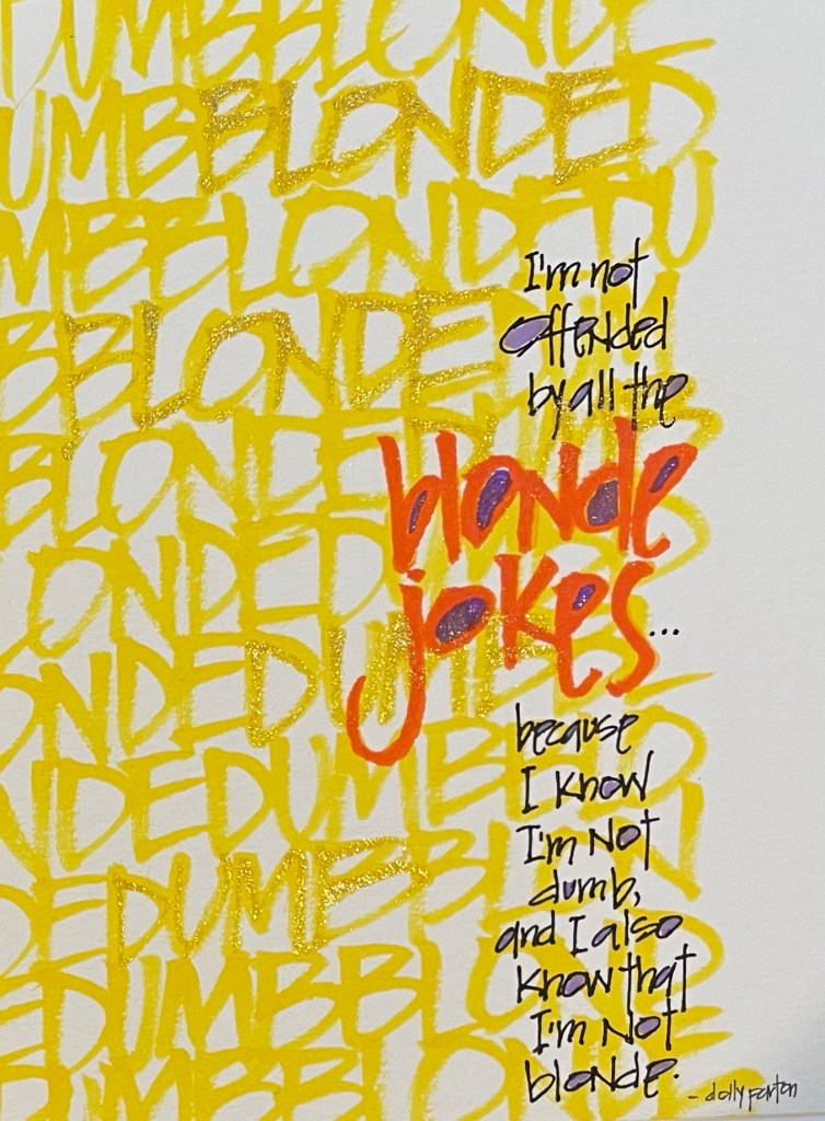 People are cruel. They speak without thinking, say things that can haunt us for a lifetime, and without knowing the power they spout words that are meant to be funny and are actually demeaning. All in the name of feeling bigger, putting people down, and creating an environment of control. And then there is the fact that people are just plain stupid and have no idea what they are talking about. Dolly reminds us of that as she tells us that she in not dumb…nor is she blonde! Touché!
