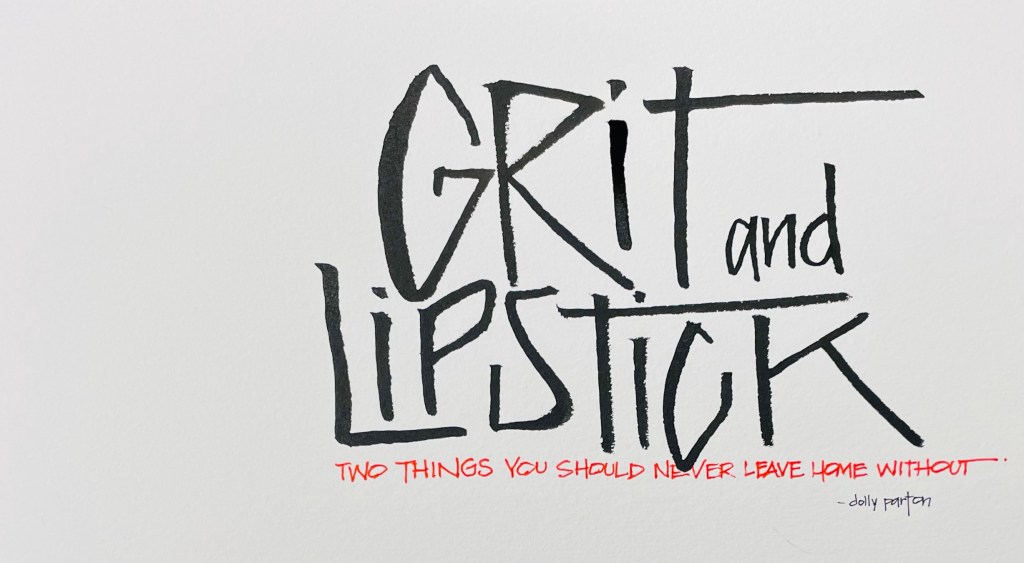 GRIT & LIPSTICK a winning combination no matter who you are. Be ready to work, be ready to shine. Be proud of who you are and be beautiful…no matter how you look. Tough and beautiful, a hard worker and a great example for others. All that rolled into two words – GRIT & LIPSTICK. Thank you for that reminder Dolly…nwo go get ‘em!