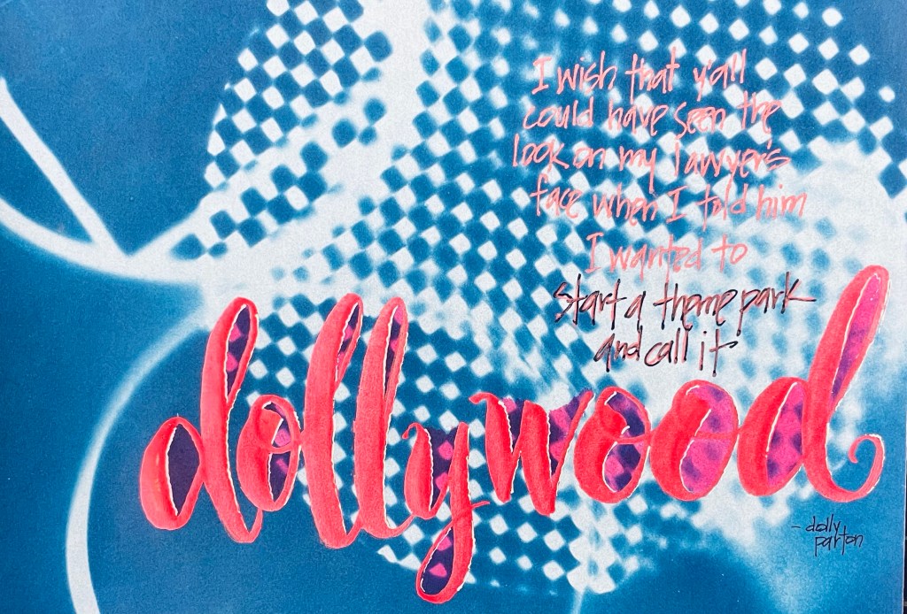 This is a fabulous quote, yet the lettering did not photograph well. Here is what Dolly Parton had to say…