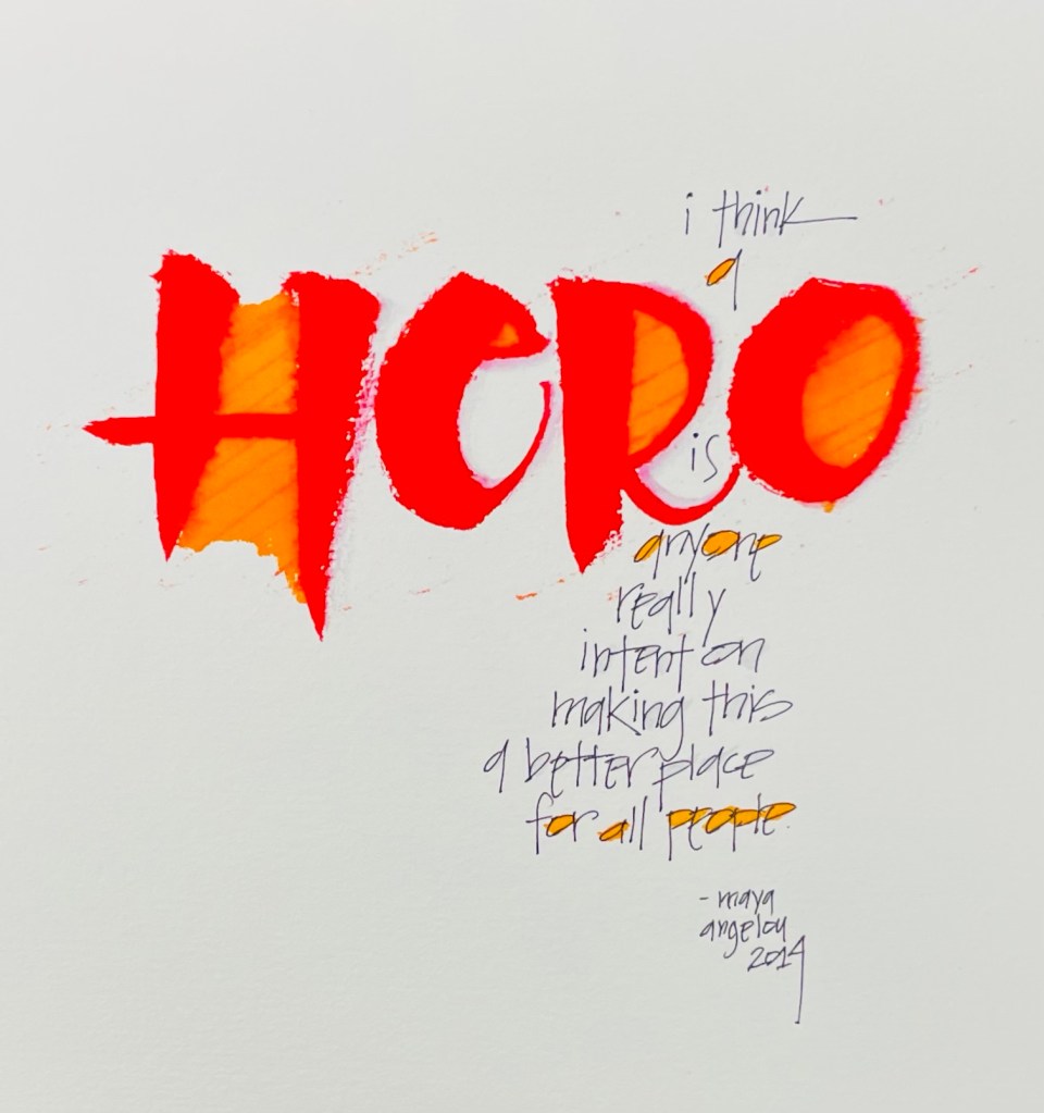 We hear the word HERO being thrown around a lot. People who do extraordinary things. Service men and women, movie characters and even public service people. There are so many different ways to be a hero, I like how Maya Angelou tells us her own definition of who is a hero…