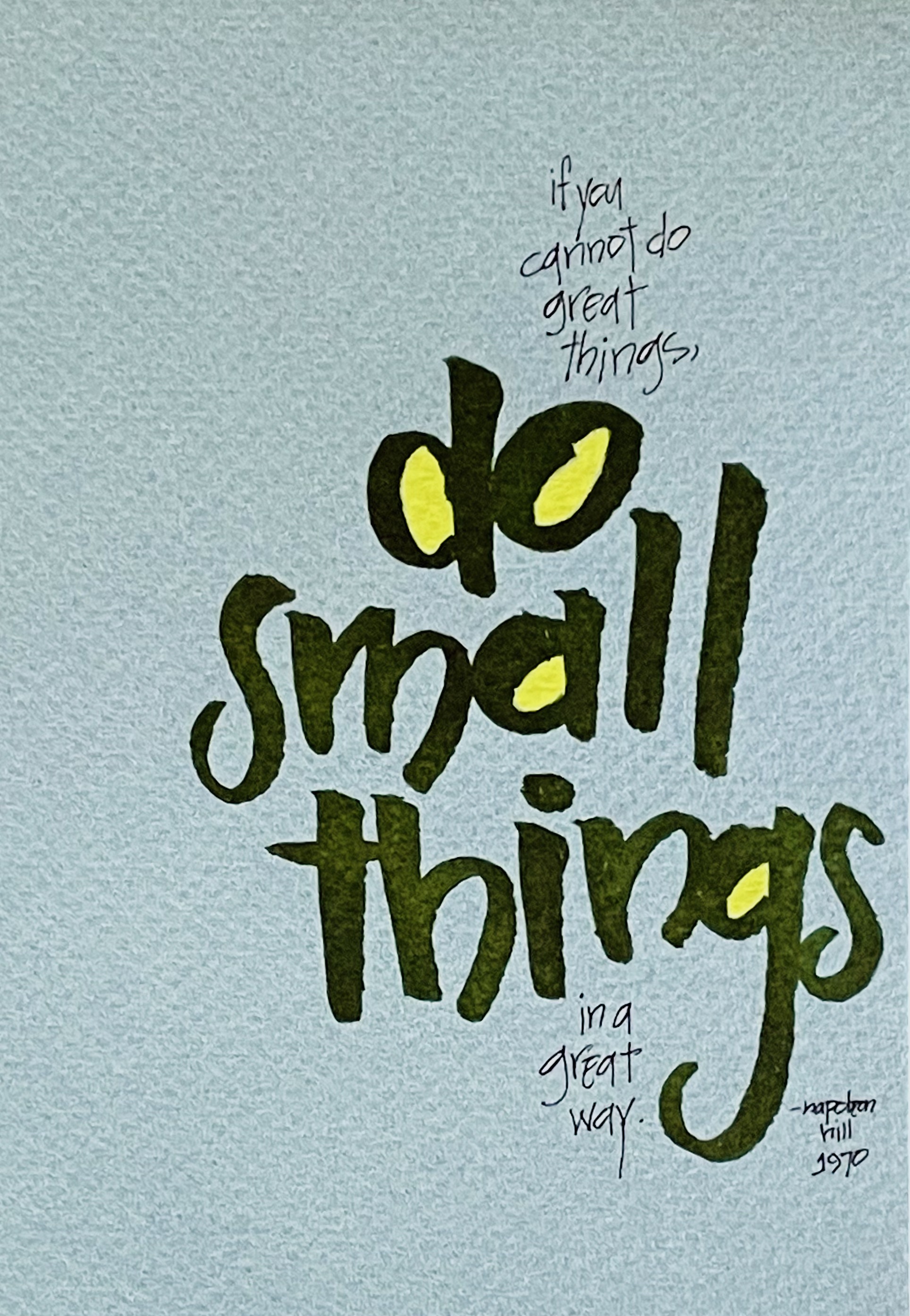 Not all of us are destined to be President of the United States, to climb Mt Everest, or even travel across the Sahara desert. The majority of us will never step foot in the White House, see Mt Everest other than on a post card, let alone want to wiggle our toes in the sand of any desert. We will do incredible things in our lives, we may simply do them as small things done in a great way.