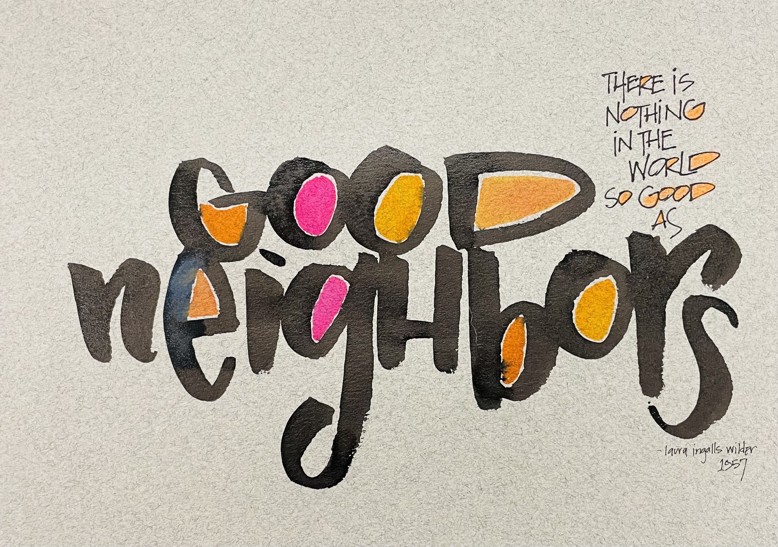 As I created this work I remembered the neighbors I experienced growing up, the ones I know living here, and the people I worked with in corporate offices. And I asked myself if I had been a good neighbor to everyone in those different places and groups. What is a good neighbor? I think we all know, even if it is by knowing what a bad neighbor is, and we can all name those. Loud, invasive, the person who cooks fish in the break room microwave. The one who’s trash gets strewn across the road and never cleans it up. We know them by their actions and how those actions impact our lives to a detriment.