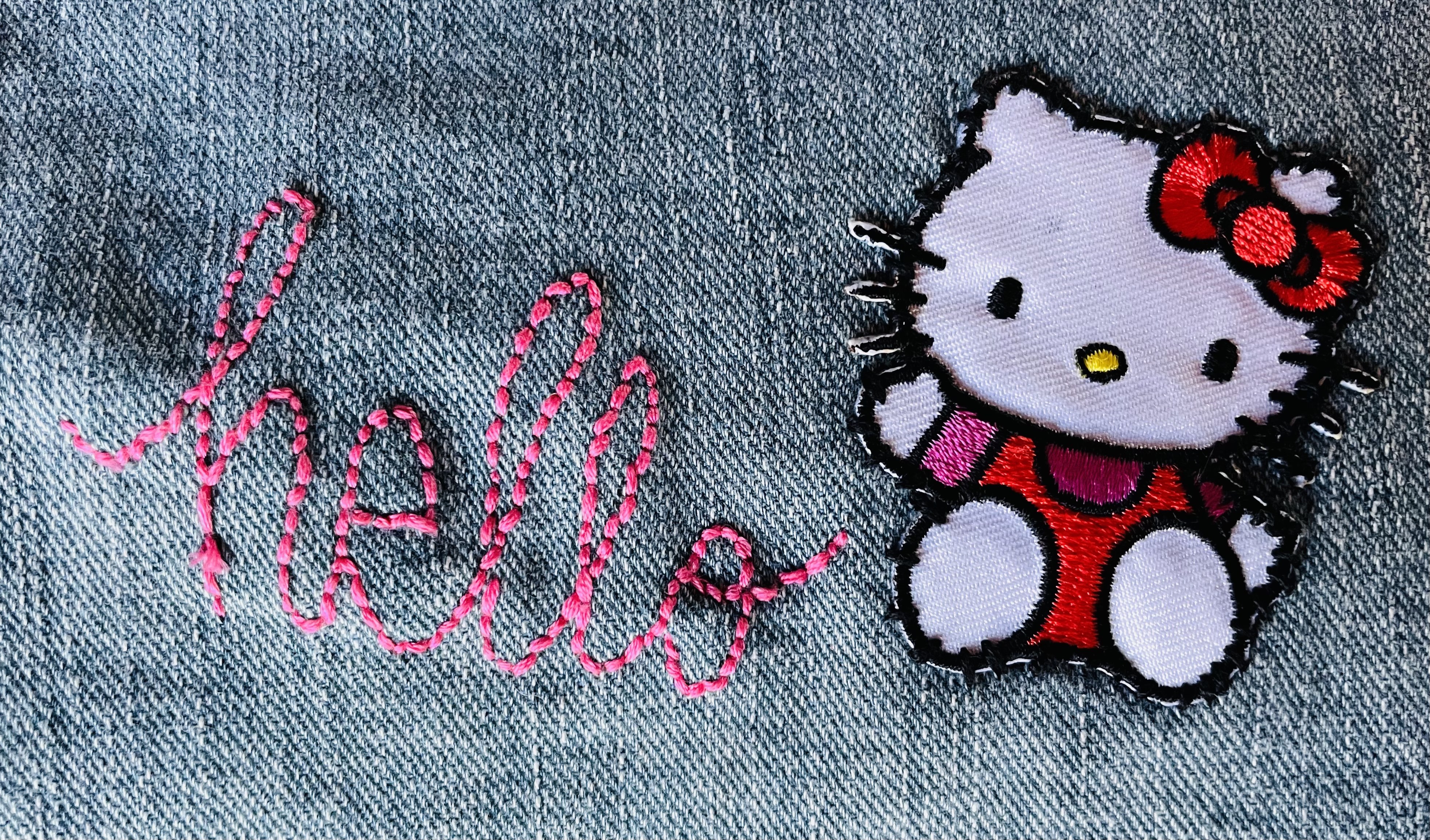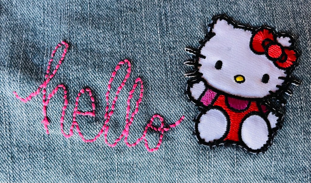For our seventh week in Scribbled Lives, we were asked to create something with sewn letters. I took the prompt literally and sewed letters onto a pair of jeans. I call these jeans my cat jeans, as they are covered with cat patches. I embroidered ‘hello’ in pink thread right next to one of my favorite Hello Kitty patches. It was a bit of a struggle to get started, yet once I did I was off and running. I had fun and remembered why I liked sewing.