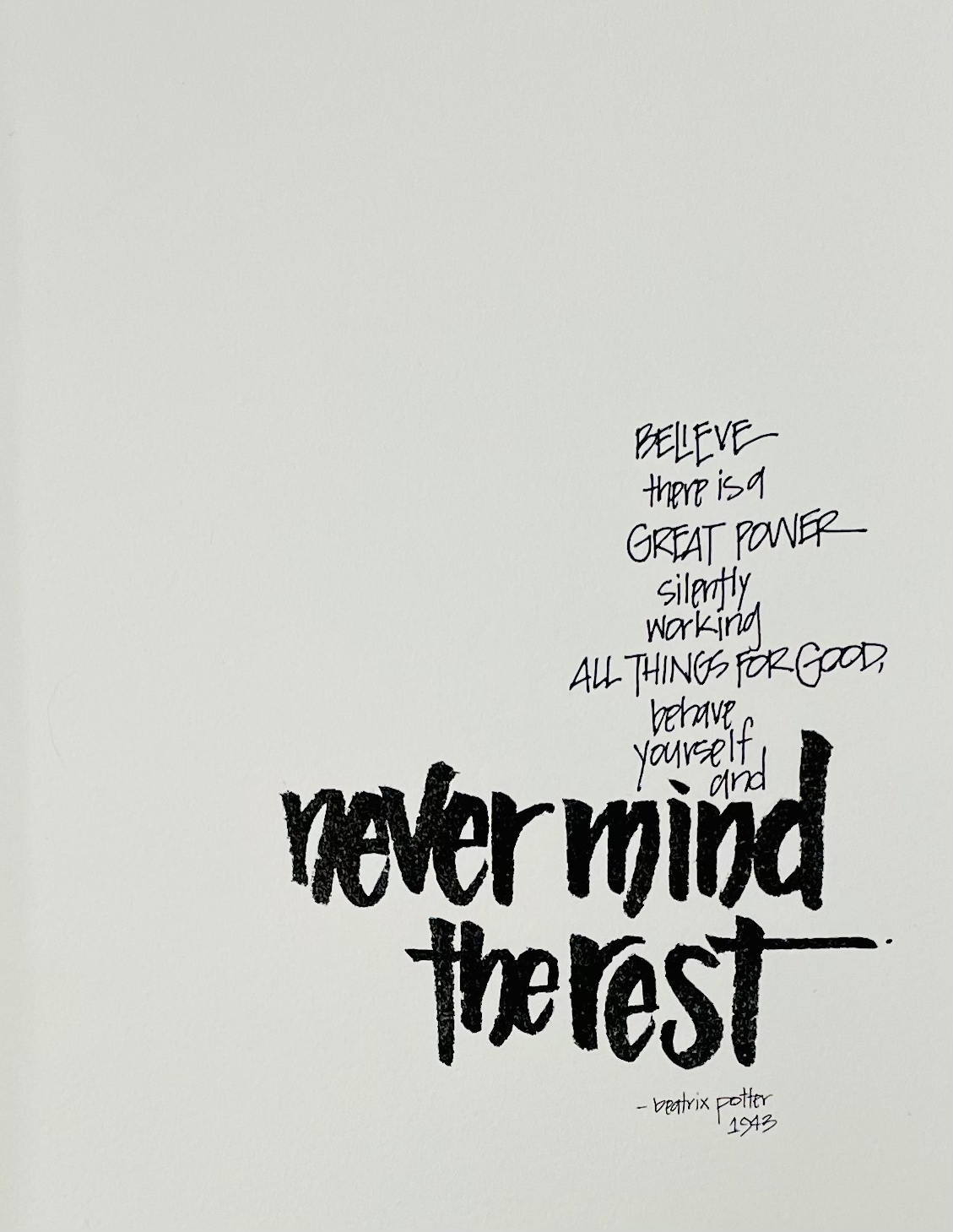 Beatrix Potter reminds us that some people will call us willful, unruly, and may even just leave us alone. Being true to the ideas and things we value – the ideas bouncing around our heads – can pay off if we dare to believe in the grand scheme of things. Her faith, her creativity and her passion for preserving country life changed our world forever.