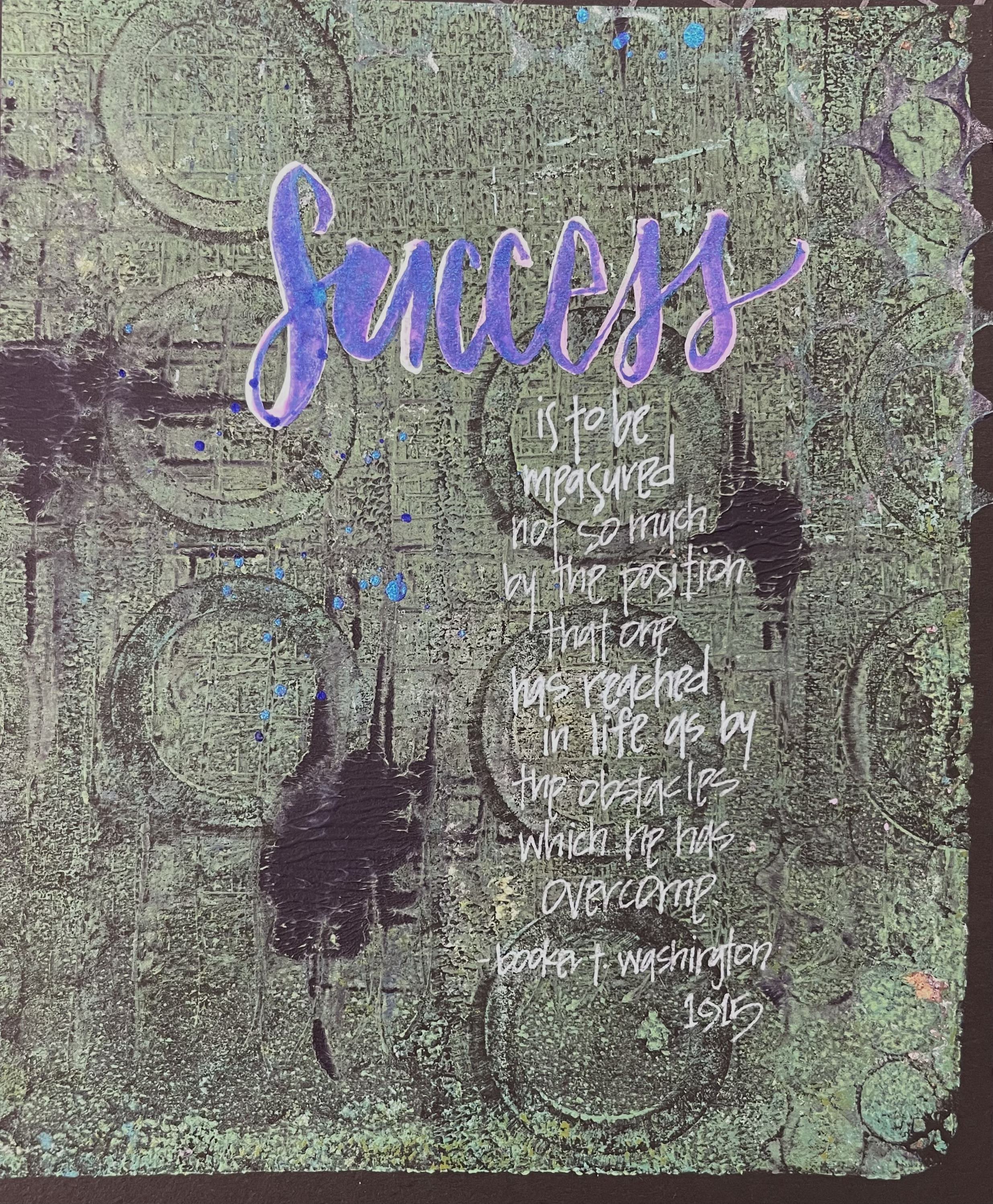 In a conversation I had with an artist, she mentioned wanting to be successful. I then asked her how she would know when she was successful. She said, “That’s a really good question…I’m not sure I know the answer yet.” I read her this quote from Booker T. Washington: