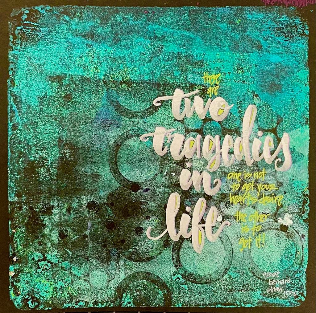 Shaw was right – at least for that woman – getting what she wanted was her second life’s tragedy. She ended up dismantling the life she had built in hopes of a better one somewhere else. People were hurt, lives were changed, and she moved forward hoping that the something new would bring her satisfaction. I watched it happen and paid heed. I took inventory of my own life and celebrated the gaining of my heart’s desires AND slowed down to savor those accomplishments. Then, I set new goals different goals, ones which did not require me to dismantle or destroy what was already built.
