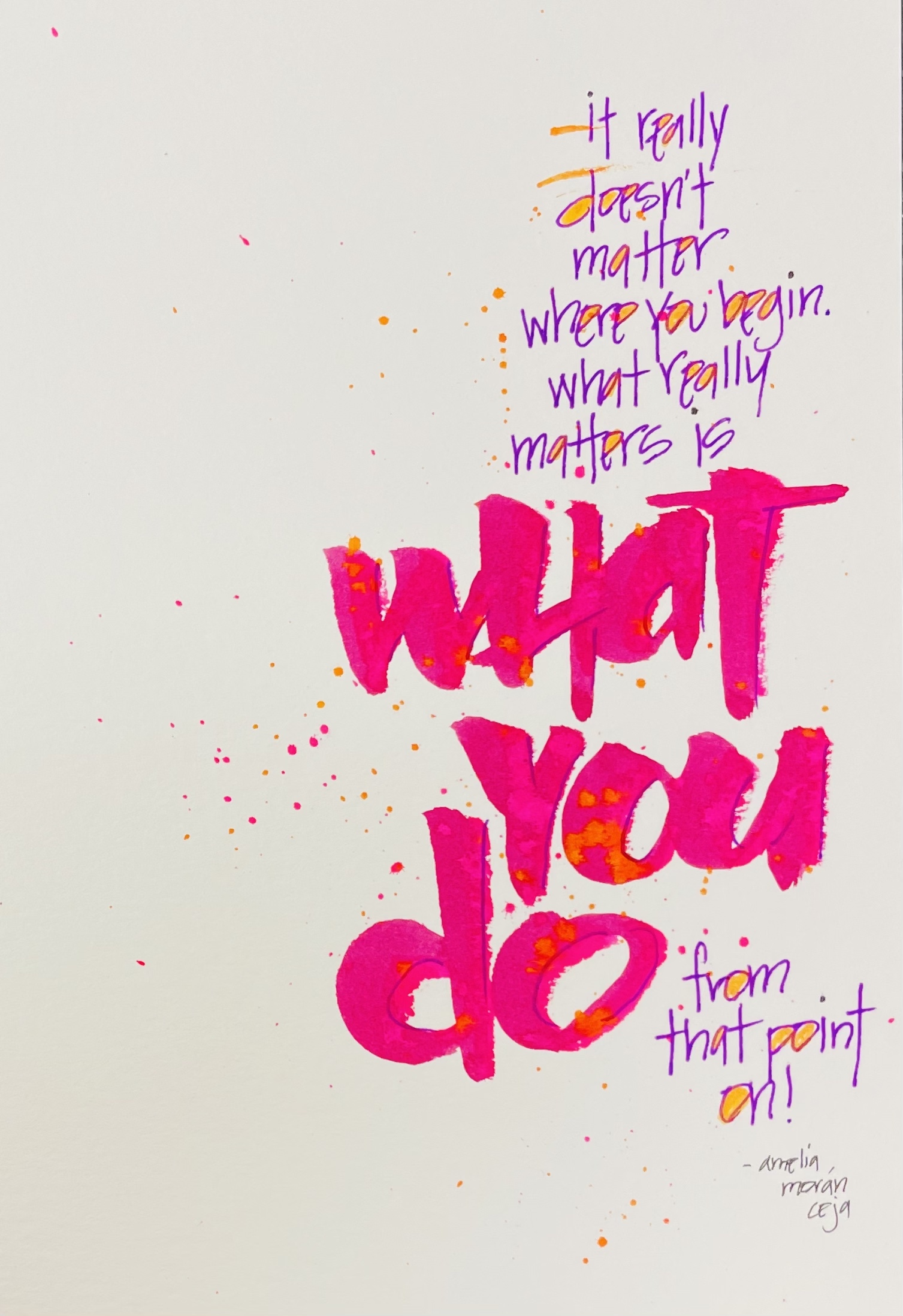 This quote reminded me that all the preparing to work is well and good, it is what you do from that point on that really matters. Never let the fact that you have a habit, pattern or process you implement before getting started on your next to do item prevent you from actually working. And if you DO NOT do any of this, maybe next time you feel stuck, you might try cleaning up your space or putting on your favorite song to get you prepared to work.