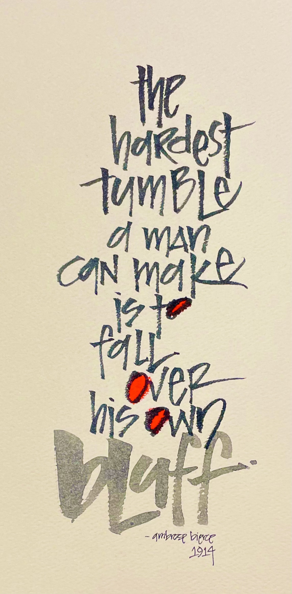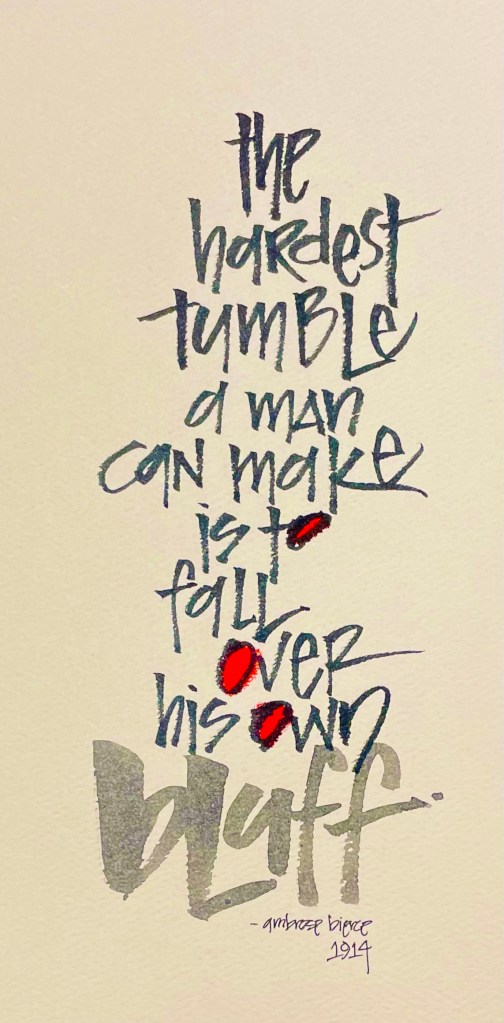 Good news is when we live our lives in truth and don’t bluff our way through things we don’t have to stumble over stories we told and forgot, and now have to cover up again. Our lies are not always to others, sometimes our worst lies are the ones we tell ourselves. We bluff and know we did, yet we do it to avoid the truth of it all. And yes, that bluff does make use stumble even if no one else ever sees our missed step. That bluff tears at our self confidence and leaves us feeling less than the best version of ourselves. I had a brilliant Mentor who told me he grew his life and career by not doing things that made him feel bad about himself…like bluffing.