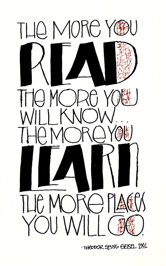 For Scribbled Lives we were asked to create something that utilized the negative and positive spaces in and between letters. I instantly thought of black and white AND wanted to create something with the words of Dr Seuss…such fun! I found this quote and enjoyed creating the wide and thin lines between words to emphasize the text.