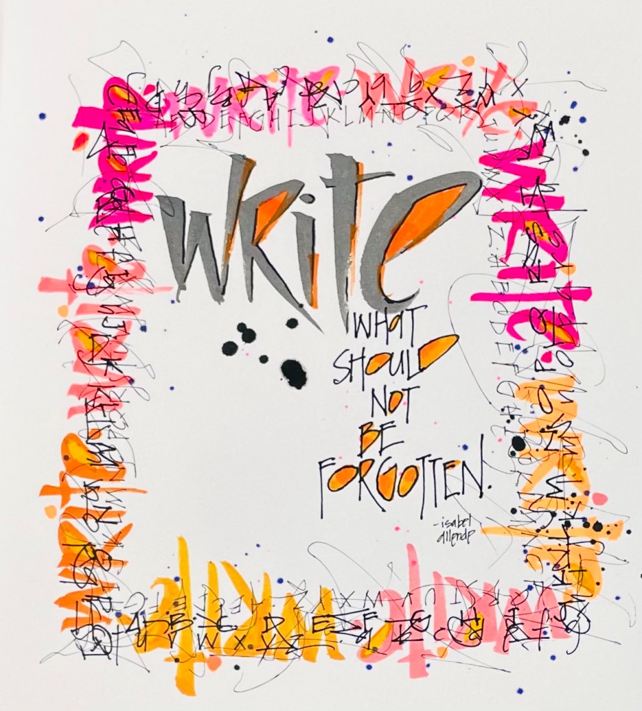 I was listening to a story on the radio and I had a very emotional reaction. Something in the story and words touched a tender area in my heart and I actually teared up while I was driving. I was mesmerized. Upon arriving at my destination I actually stayed in my car for another fifteen minutes to hear the end of the story. THAT is great writing! I remembered these words from Isabel Allende about writing what should not be forgotten, and I gave thanks for the writer of the radio story as their courage touched my heart when I was not expecting it.