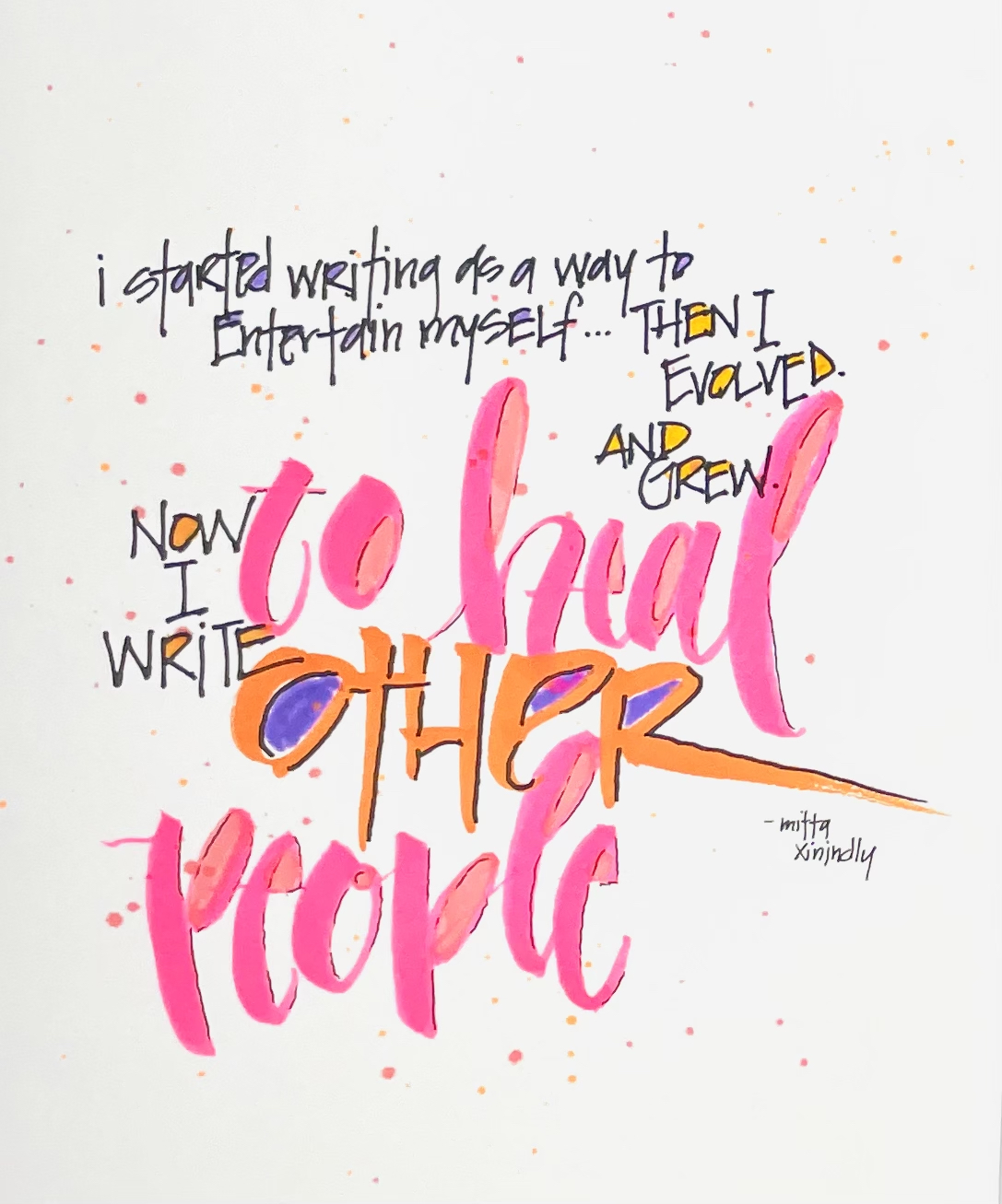 I was talking with a young woman recently, and she mentioned why she was doing something. She said, “I like doing it. I find it entertaining.” I listened as she spoke about what interested her, and I silently thought of this quote from Mitta Xinindlu. Funny how as we progress through our own experiences and the years our motives for doing what we do changes.