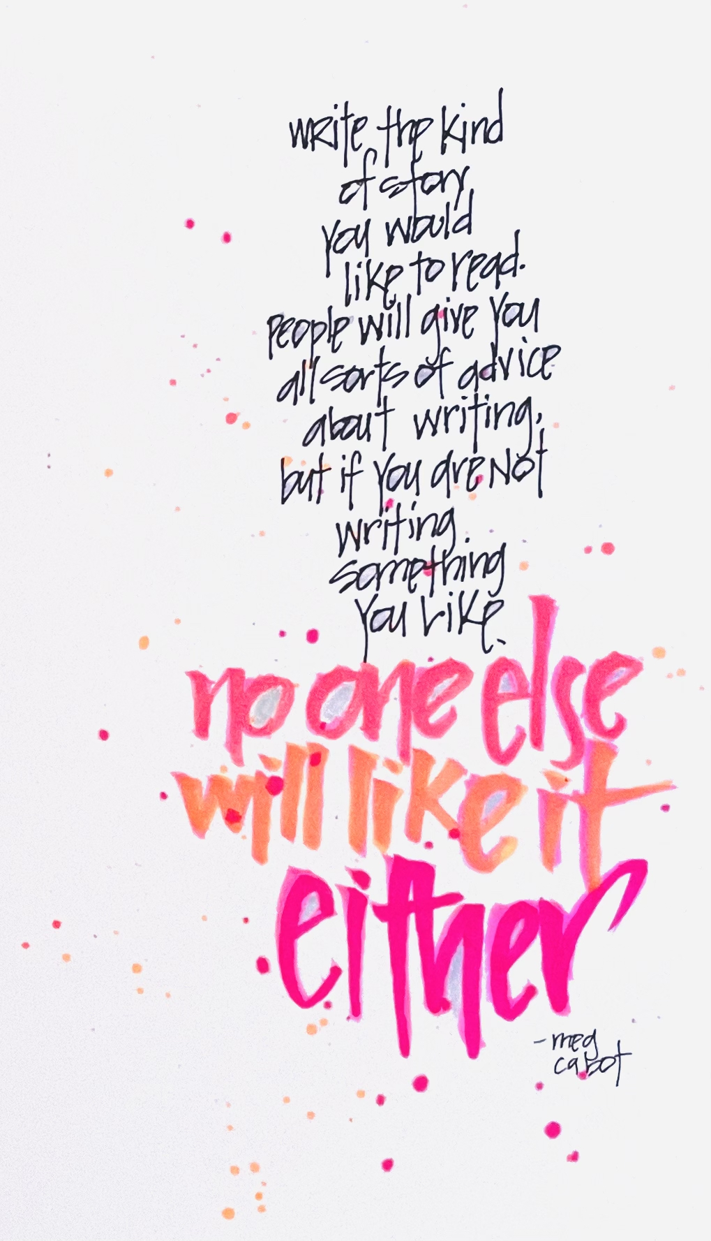 Meg Cabot also reminds us that we have to create for ourselves first. People will blow with the wind and are often fickle. When we invest by sharing our own thoughts, doing things our own way, and when we are true to ourselves, THAT is when we are successful. Creative people struggle with their work being accepted, liked and criticized…I know I do. For a long time I listened to that little voice in my head telling me how to play it safe, be like everyone else. Once I set my sights on being true to myself, everything changed.