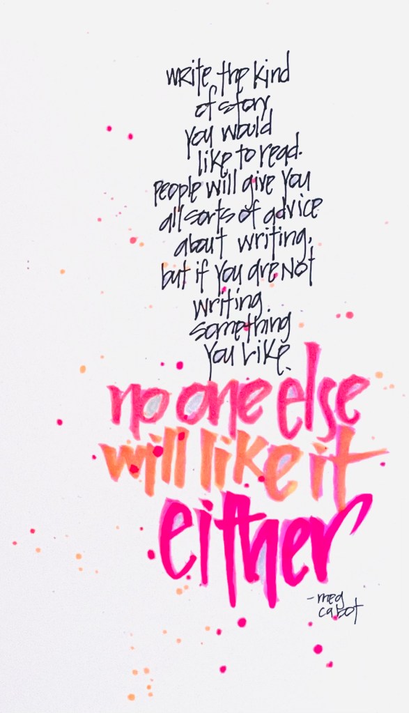 I like that Meg Cabot commented that people will give you all sorts of advice about writing…or anything you are doing. Even if you did not ask for their thoughts or advice, they give it. Somehow we as people give our thoughts and advice on all sorts of topics without ever being asked. What’s up with that?