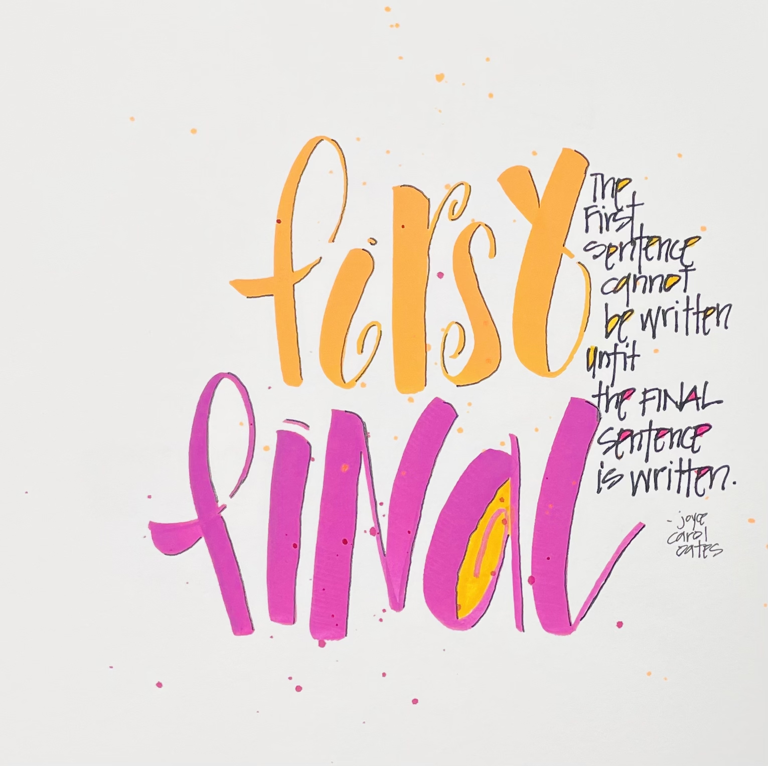 Joyce Carol Oates reminds us here that the first and last lines of any manuscript are only finished when they relate to each other. The first sentence cannot be written until the final sentence is written. Isn’t that true of life as well? We cannot actually consider anything done unless we have connected it back to where we began? In other words, we cannot be our true selves unless we own the path we have traveled and embrace where it all started. Which means we have to handle or manage the shrapnel and debris we wadded through to get to the end.