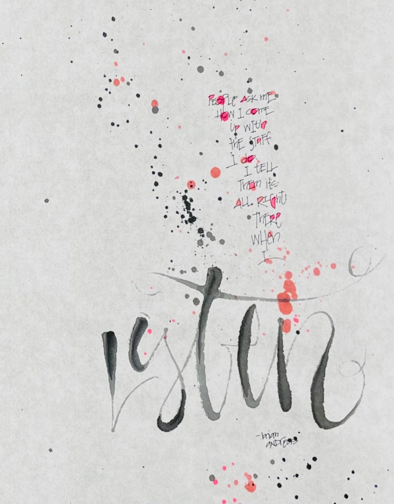 For Scribbled Lives we were given the name Brian Andreas. His art and quotes are well known and we were asked to use any of his quotes for our work this week. I chose this one as it tells us a little bit about his process: